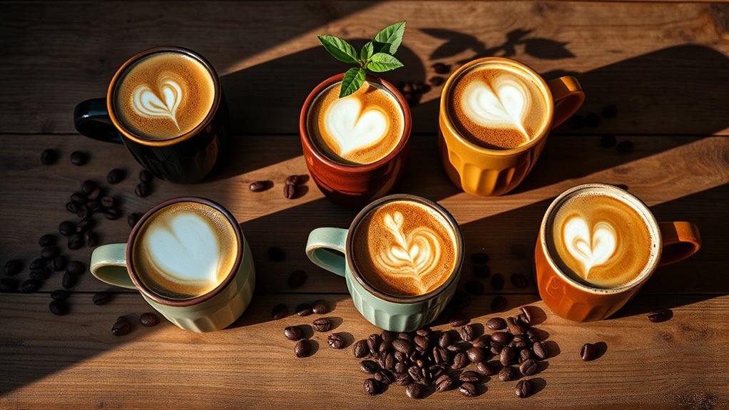 For the best cappuccino mugs in 2025, consider the CNGLASS Large Double Wall Glass Coffee Mug Set, which keeps drinks hot without burning your hands. The DeeCoo White Cappuccino Mug offers a classic look with excellent heat retention. The AmorArc Large Coffee Mugs are perfect for generous servings. DOWAN’s Cappuccino Cup and Saucer Set is ideal for lattes, while the YUNCANG Double Wall Mugs provide excellent insulation. Explore more features and benefits to find your perfect match.