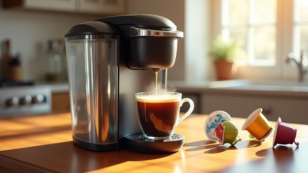 And don’t forget about the compact K-Mini Mate for those tight spaces! Each model shines in brewing efficiency analysis, so you’ll get your caffeine fix faster than you can say “more coffee, please!”