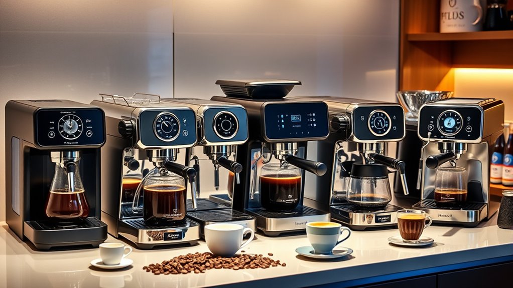 In 2025, you’ll find the best dual coffee machines that cater to every coffee lover’s needs by combining versatility and efficiency. Popular choices include the Hamilton Beach FlexBrew Trio for single cups or full pots, and the DeLonghi COM532M for coffee and espresso. The Keurig K-Duo offers hot and iced varieties, while models like the Cuisinart SS-16 provide flexible options. Each model has unique features to suit various preferences. Discover which machine might be perfect for you.