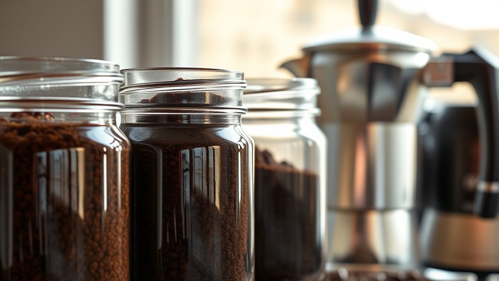 Choosing the right ground coffee for your Moka pot can greatly impact your brewing experience and the flavor of your final cup. For ideal extraction, you should use a fine grind that allows the water to flow through properly, enhancing the rich flavor profile. Low acidity is also important, as it helps achieve a smooth taste and prevents bitterness, which is vital for Moka pot brewing. Many coffee enthusiasts prefer medium to dark roasts; these roasts bring out bold flavors and create a desirable crema. Freshness is key, so opt for freshly roasted and ground coffee beans. Finally, remember that not all coffee types will work well without adjusting your brewing technique to match the coffee’s characteristics.