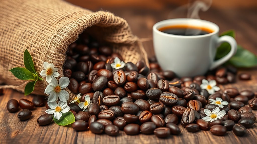 Sourcing low acid organic coffees involves several key factors that can greatly impact both taste and environmental sustainability. First, selecting beans from high-elevation regions is essential, as these areas promote lower acidity and richer flavors. Many organic coffees adhere to strict certifications, ensuring sustainable farming practices like composting and natural pest control. Additionally, sustainable sourcing supports fair trade, which leads to better wages and working conditions for farmers while promoting biodiversity. Using shade-grown methods helps preserve natural habitats and reduces chemical use. Finally, ethical sourcing guarantees that your coffee is free from harmful pesticides and heavy metals, protecting both your health and the environment. These factors make a significant difference in the quality and impact of your coffee choice.