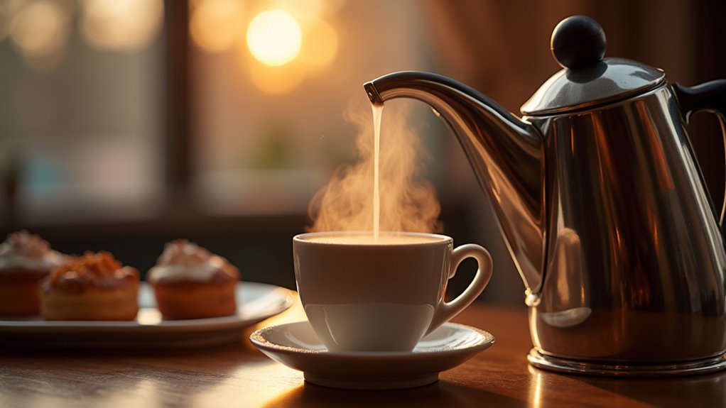 A milk steamer is like a magic wand for your milk, turning it into creamy froth for lattes and cappuccinos! It works by blasting steam through a special wand, creating silky foam that’ll impress your friends. Whether you’re using a fancy electric model or a handheld frother, it’s all about getting the right texture. Whole milk gives the best results, but even non-dairy options can froth up nicely. Stick around, and you’ll discover more tips for that café vibe at home!