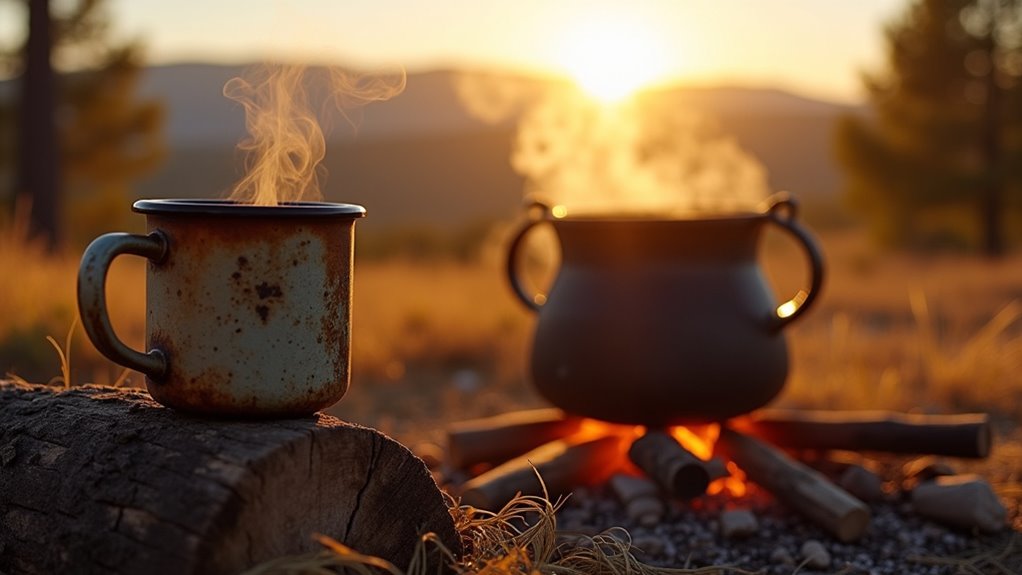 You’re gonna need a few essential ingredients and tools to whip up that perfect cowboy coffee! Start with medium-coarse coffee grounds—about 2 tablespoons per 8 ounces of clean, cold water. Grab a heat-resistant pot or kettle, and don’t forget a stirring spoon to mix things up. If you’re feeling adventurous, a pinch of smoky sea salt can add a fun twist. And hey, a fine mesh strainer helps keep those pesky grounds out of your cup, but it’s optional. Plus, if you enjoy a creamy texture, consider adding non-dairy creamers to enhance your coffee experience. So, gather your brewing tools, fire up that stove, and let’s make some coffee that’ll bring everyone together!