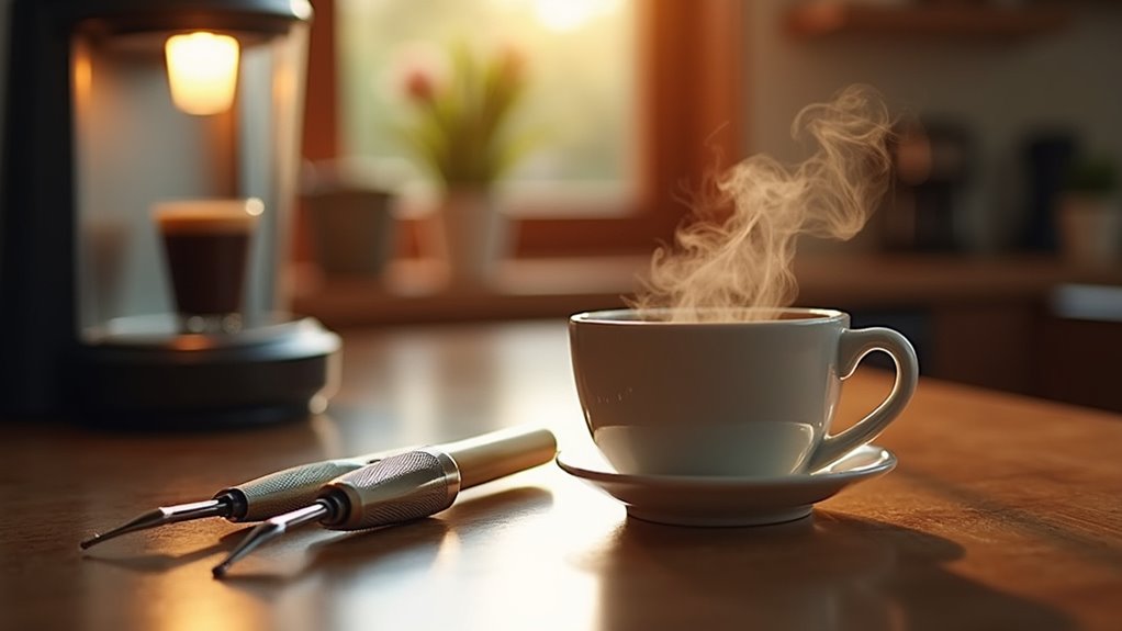 Needle maintenance on your Keurig is all about keeping those tiny coffee-dripping needles squeaky clean, so you can enjoy that perfect cup without any bitterness or clogs. It’s super easy—just clean them a few times a week to keep the coffee flowing smoothly. If you notice weird-tasting coffee or longer brew times, it’s time for a little TLC. Trust me, a little upkeep goes a long way in making your morning brew awesome! Stick around, and you’ll discover more handy tips.