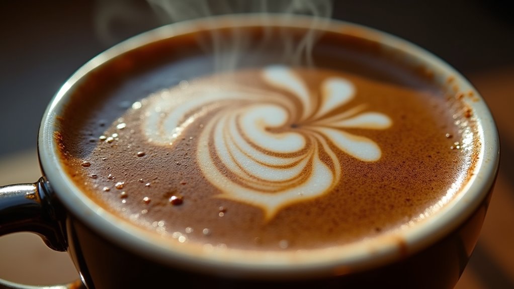 Those white specks often come from natural coffee oils, adding a richer mouthfeel and depth to your drink. This isn’t just any old coffee; it’s a quality indicator that shows you’re enjoying an authentic extraction. Additionally, the rich flavors of ground coffee can enhance your overall coffee experience, making each sip more enjoyable.