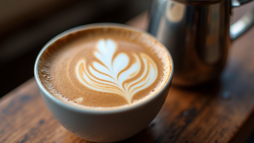 When it comes to cappuccinos, whole milk is the classic go-to! It froths beautifully, creating that luscious foam we all love. If you’re feeling adventurous, try oat or almond milk; they’re trendy and tasty alternatives. Low-fat options like 1% or skim milk are lighter but still deliver flavor. Just know that each milk brings its own vibe, so don’t be shy—experiment a bit! Stick around, and you’ll discover some tips on frothing techniques next.