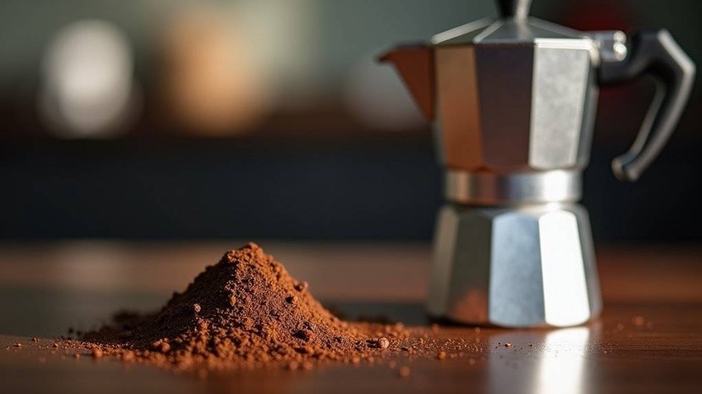 Getting the grind right is only half the battle; you’ve gotta have the right equipment too! For moka pots, a burr grinder is your best friend. Aim for a medium-fine grind—think table salt! Adjust your settings, usually just coarser than espresso, and keep that grind consistency tight. Remember, regular grinder maintenance is key; clean those burrs to avoid funky flavors. If you’ve got a Breville Smart Grinder or a Baratza Encore, you’re in luck! They’ll help dial in that perfect grind. Additionally, using adjustable grind settings can enhance your brewing experience and flavor extraction.