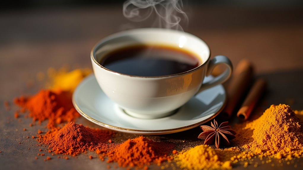 Imagine sipping on a blend of cinnamon, ginger, and turmeric—each offering fabulous health benefits. Cinnamon can help lower blood sugar, while ginger aids digestion, and turmeric fights inflammation. Toss in some cloves for their antioxidants, and you’ve got a powerhouse drink!