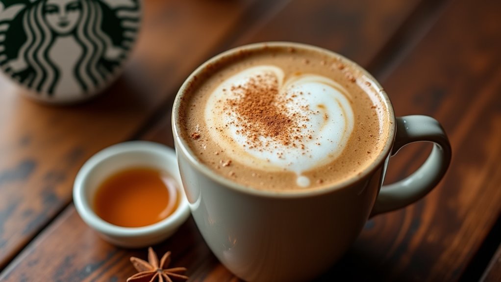 Boosting your caffeine with a shot of espresso in your Chai Tea Latte is like adding a turbo engine to your cozy ride! Imagine that warm spice, now supercharged with an extra 75 mg of caffeine. You’ll feel the espresso benefits kick in, giving you a fantastic caffeine balance. Whether you go for a Short or Venti, your drink becomes a delicious energy bomb, rivaling even a small coffee. Plus, it tastes amazing with those chai spices! Just remember, if you’re caffeine-sensitive, keep track of your intake. But hey, who doesn’t love a little boost to get through the day? Adding espresso to your drink reflects the customer customization trends that allow for unique and personalized coffee experiences.