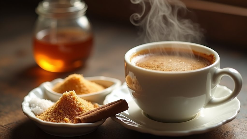 Sweetening your coffee can be a blast! You’ve got options like stevia, which is super sweet without the calories, or honey if you’re feeling all natural. Maple syrup brings a rich flavor, while agave nectar is perfect for iced drinks. For a zero-calorie kick, give monk fruit a try. Each has its vibe, and they all add delicious twists to your daily brew. Stick around, and you’ll find even more sweet ways to amp up your coffee experience!