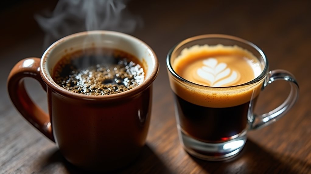So, what’s the scoop on black coffee and espresso? Well, espresso’s all about high pressure and quick shots, making it super concentrated and rich. Black coffee, on the other hand, takes time and allows those flavors to bloom in a slow, smooth brew. Espresso packs a caffeine punch in a tiny glass, while a big ol’ mug of black coffee has more caffeine overall. Each has its vibe, so pick your poison based on your mood—stick around, and you’ll uncover more fun facts!