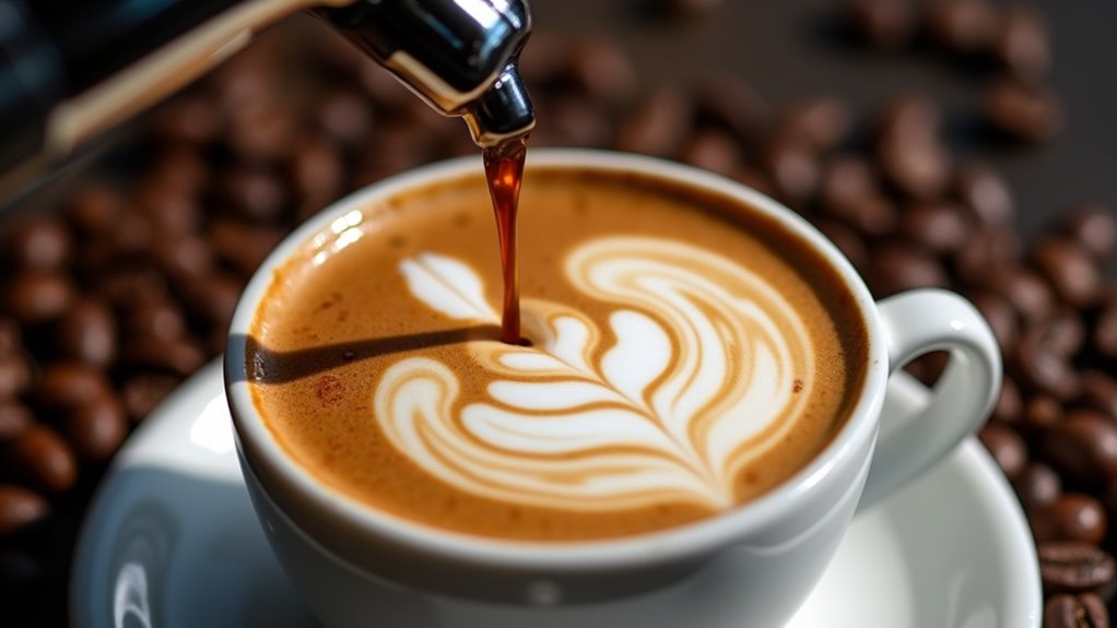 Tilt the cup inward, and keep that spout close to the surface to create stunning designs. Remember, it’s all about milk integration, so let it skim across the crema like a smooth dance. Using a quality cappuccino machine can elevate your latte-making experience.