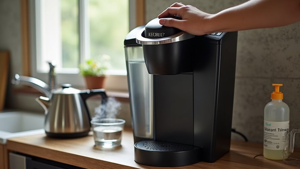 To keep your coffee maker running smoothly, regular cleaning with vinegar cleaning tips can help prevent buildup and maintain flavor.